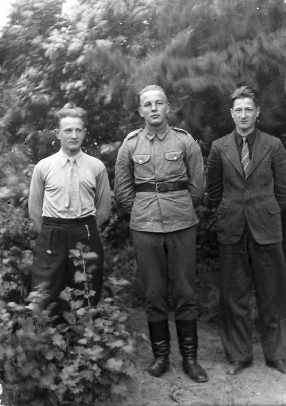 Vas. Oiva, Vilho (kuoli sodassa -41) ja Eero Katajamäki (kuoli sodassa -44), serkukset. Valokuvaaja Heikki Heikkola Kuvakoko 83x60