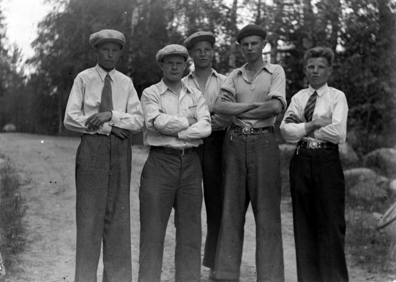 Vas. Armas Vienola, Arvo Kilkanen, Martti Einola, Aarne Ylämäki ja Sulo Einola. Valokuvaaja Heikki Heikkola Kuvakoko 83x60