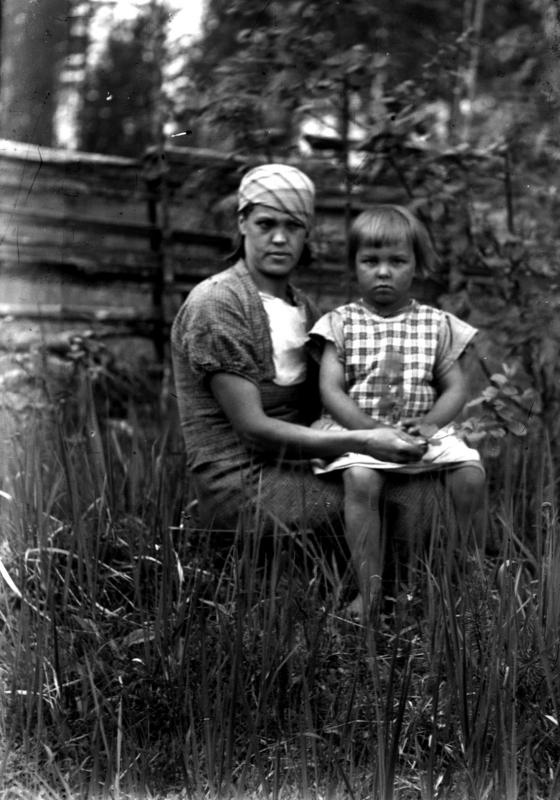 Senja Heikkola, (os. Auraniemi, myöh. Räntilä) tytär Saima sylissä Valokuvaaja Heikki Heikkola Kuvakoko 83x60
