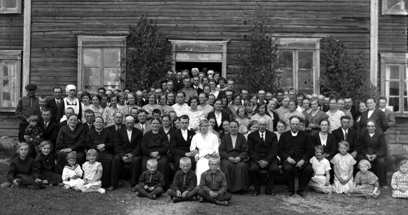 Edessä lapsia: 1.Tuovi Pollari 4.Lili Tohni, Pojat Tauno, Leo Tohni, Hautala, 9.Taimi Hautala ja Eeva Hautala. Hilda, Aino, Aini Tohni, Aino, Kerttu, Anni Raiski, Vieno, Aino Kuusisto, Aini Kukkola, Kalle, Vihtori, Maria Suutala, Hilma Könni. Etupenkissä: Otto ja Elli Seppä-Lassila, Sylissä Maine?, Amanda Annala, Yrjö ja Olga Tohni, (Tauno ja Vieno Morsiuspari) Lyydia ja Nestori Hautala, Kirkkoherra Väinö Tuomola.