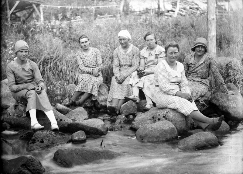 vas. 2. Lempi Mesimäki myöh Sepponen, 3. Jenny Uusimäki, 5. Lempi Mäki-Pollari myöh. Luosa, 4. Maria Syrjälä, 6. ?? Valokuvaaja Heikki Heikkola Kuvakoko 83x60