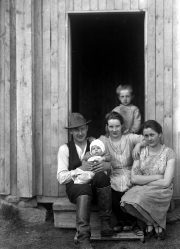 Reino ja Hilja Salmenaho (ent. Isomäki), lapset Unto ja tyttö (kuollut pienenä). Hilda Isomäki (myöh. Virtanen) Valokuvaaja Heikki Heikkola Kuvakoko 83x120