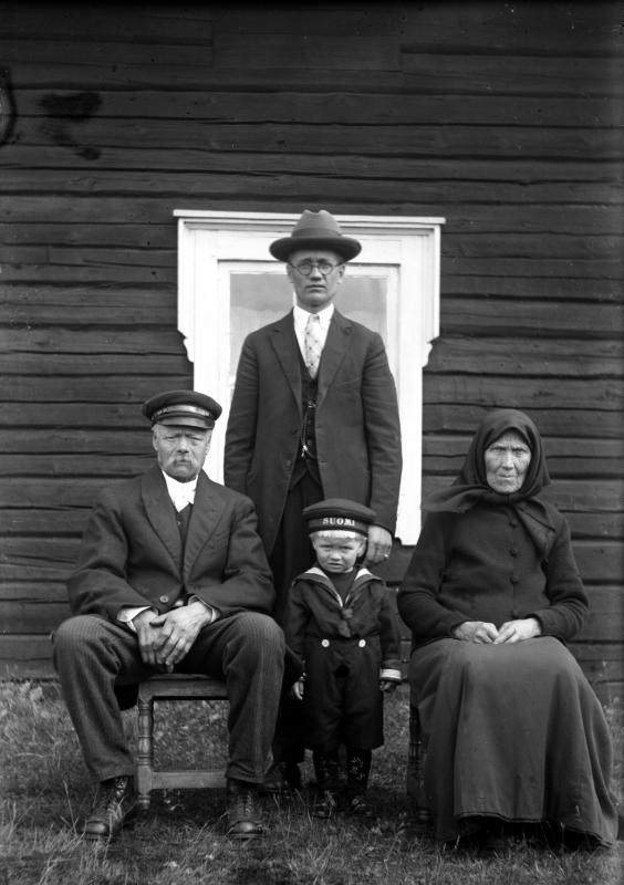 Seisoo Matti, edessä Juho, Paavo ja Lyydia Koivuniemi.