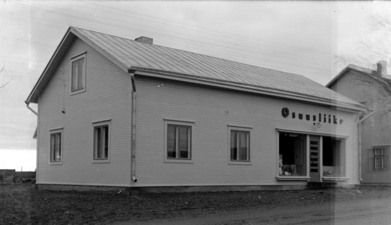 Töysän kirkonkylällä Osuusliike Pennalan mäen varrella. Viereinen rakennus ent. Takala, Ahopelto... Valokuvaaja Heikki Heikkola Kuvakoko 83x140
