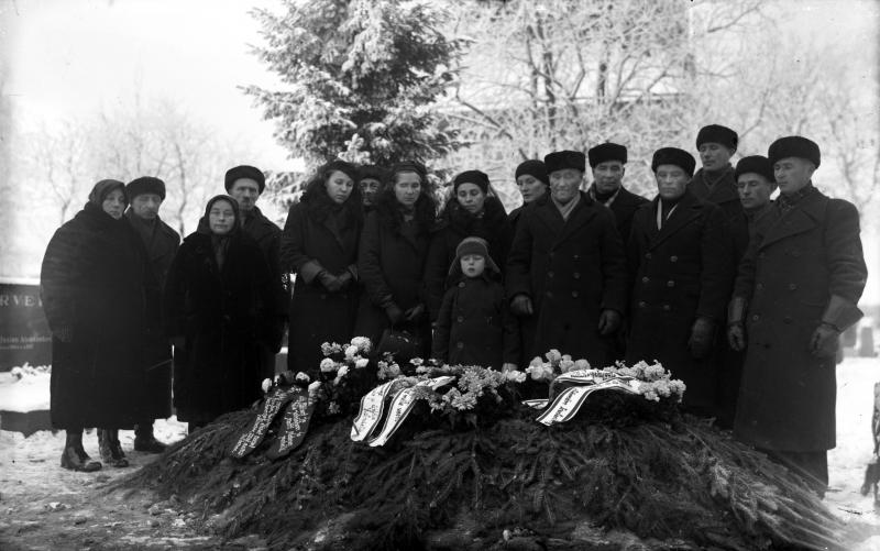 Matti Rankilan vaimon Iida os. Jokiahon hautajaiset 25.11.1939. Matti Mäkiranta äitinsä Impin (os. Rankila) kanssa. Valokuvaaja Heikki Heikkola