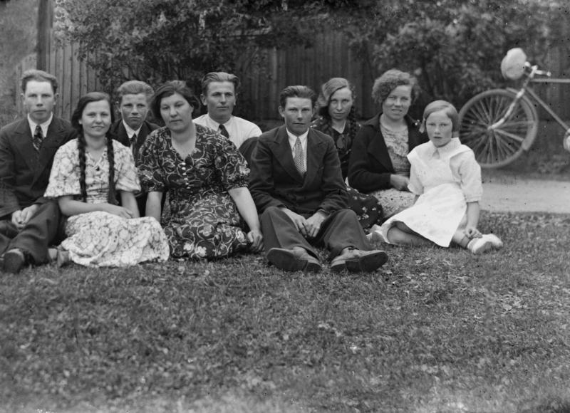 Kolmas oik. Hilda Moisio, Edessä Einolan perhettä, toinen oik. Einola Valokuvaaja Heikki Heikkola Kuvakoko 83x60