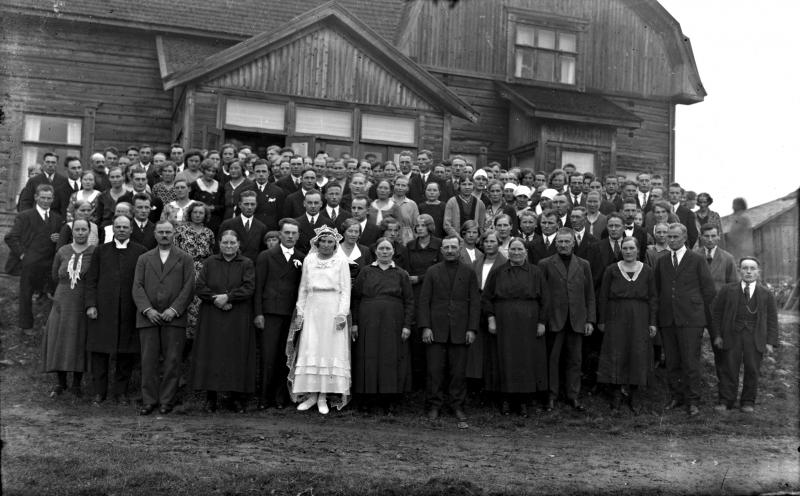 Vasemmalla reunassa Laila ja kirkkoherra Väinö Tuomola, oikealla ensimmäinen Valde Pennala. Valokuvaaja Heikki Heikkola Kuvakoko 100x150