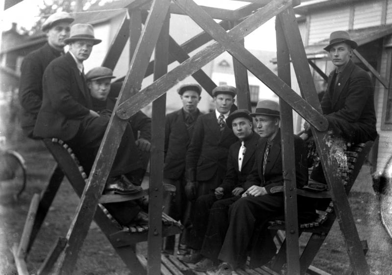 Sulo Rasinperä 2. vas. Arvo Kilkanen, takana Toivo Vuorela, Armas Vienola, edessä Vihtori Mäkiranta Valokuvaaja Heikki Heikkola