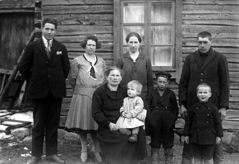 Verner Vanhamäki,Lyyli Vanhamäki,Hilma Vanhamäki, Nikodemus (Teemu) Vanhamäki edessä Hanna Vanhamäki. Lapset Aino,Arvo ja Toivo Valokuvaaja Verner Vanhamäki