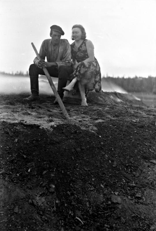 Kalle Yli-Mutka ja Aino Luoma (myöh. Ojansivu) tervahaudalla