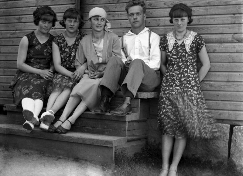 Keskellä Hilda (os. Isomäki) ja Lauri Virtanen, Isomäen sisarukset Hilja, Meeri ja Elli Valokuvaaja Heikki Heikkola