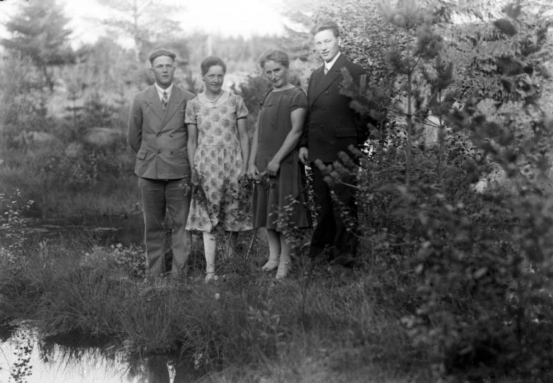 Vas. Pennala Väinö, Pennala Martta os. Keisala, Ruusa Välkky myöh. Haveri, Eino Haveri Valokuvaaja Heikki Heikkola