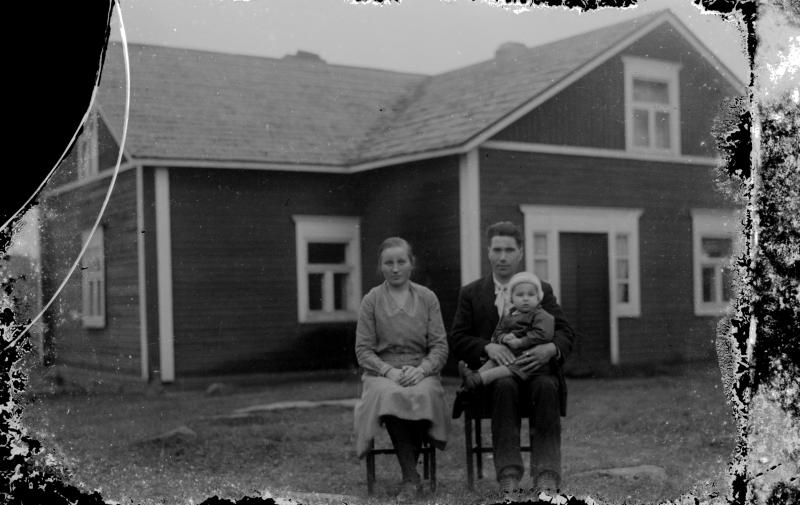 Verneri ja Maija (os. Pennala) Vanhamäki, sylissä heidän ensimmäinen lapsensa Unto, s. 1931, k. 1941. Hakojärvi Valokuvaaja Heikki Heikkola
