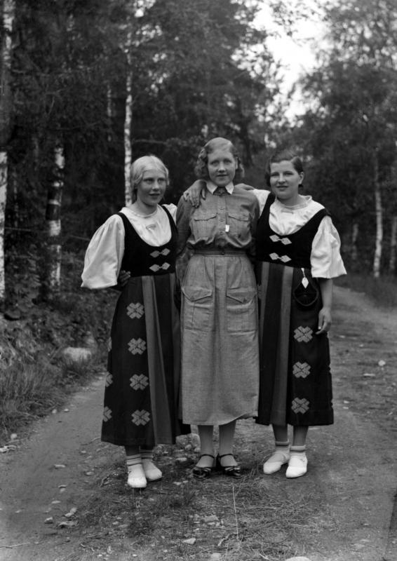 Vas. Ilma Keski-Kulju (myöh. Kukkola), Aini Kukkola (myöh. Paimen), Ilmi Tohni (myöh. Aho) Valokuvaaja Heikki Heikkola
