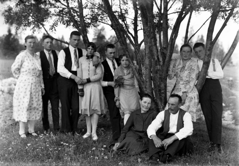 Lempi, Eino, Armas, ?, Toivo ja Meeri, Hilma ja Edvard Haveri, Hilma ja Väinö. Hilma ja Edvard Haverin perhettä. Valokuvaaja Heikki Heikkola