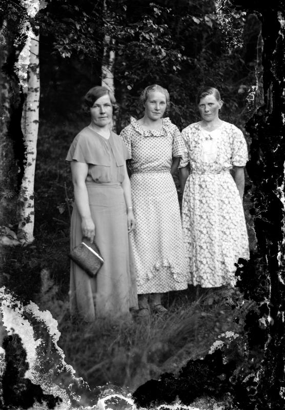 Vas. Hilma Ollikainen (myöh. Huutoniemi), Kesk. Lyyli Aho (os. Housu, ent Mäkelä), Hilja Takamäki Valokuvaaja Heikki Heikkola
