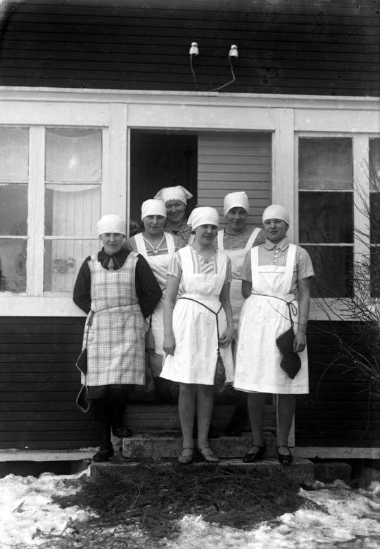 Edessä vas. Elli Hakojärvi, Hilda Virtanen, Elli Rankila, takana vas. Alli Kallioniemi Valokuvaaja Heikki Heikkola