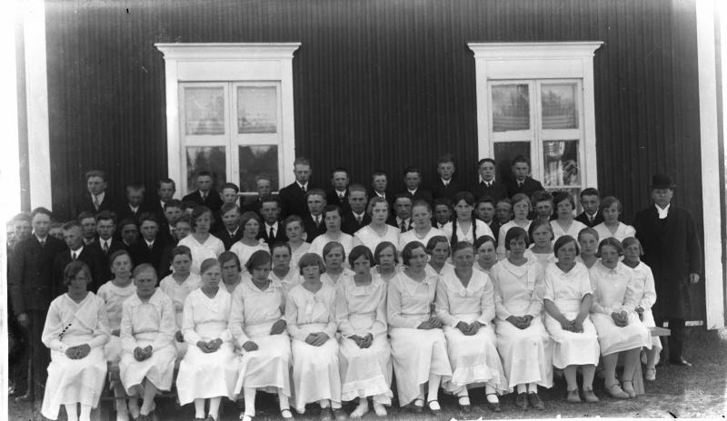 1917 syntyneet rippikoulaiset. Pappi Väinö Tuomola.