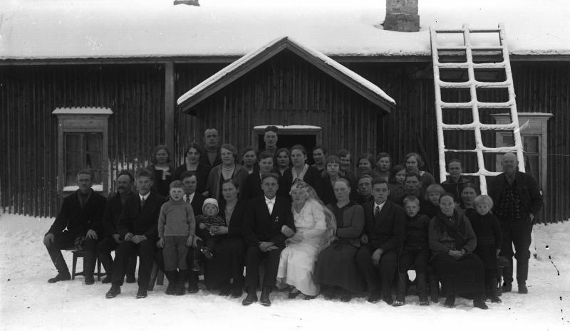 Hääpari: Kalle Ojala ja Kaino Peurala Vihitty 18.2.1933. Sulhasen vierellä Heikki ja Jenny Peurala sekä pojat Leo ja Kauko. Rintala ja Anna, Kaisa Rintala. Valokuvaaja Heikki Heikkola