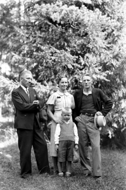 Vas. Artturi Jokela, Bertta (Artturin vaimo), Paavo Jokela, Keskellä Artturin ja Bertan poika Unto Valokuvaaja Heikki Heikkola