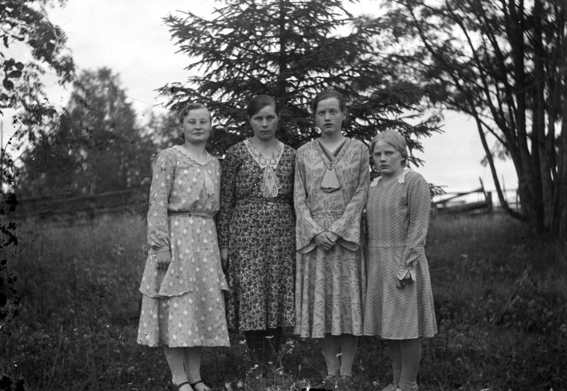 Vas. Maija Hakomäki (myöh. Viitala), Maria Sepänmaa (Niinistö, Alavus), Haapa-aho (Alavus), Saima Haapa-aho (Alavus) Valokuvaaja Heikki Heikkola