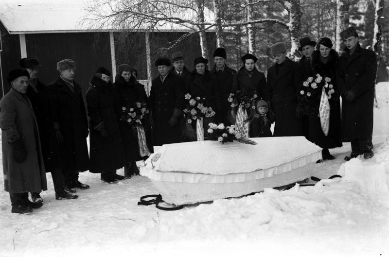 Kuvattu kirkon edessä, taustalla makasiinirakennus