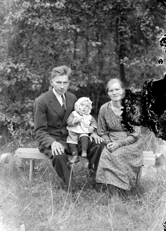 Eino ja Anna (os. Kivistö) Myllyaho sylissään 1932 syntynyt Oiva Hakojärvellä. Valokuvaaja Heikki Heikkola Kuvakoko 83x120