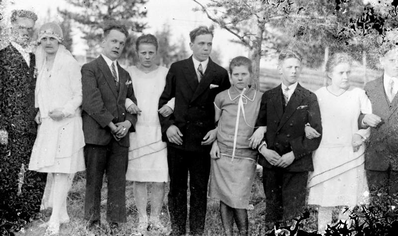 Lauri ja Hilda Virtanen os. Isomäki. Vihitty 17.5.1929, Meeri Isomäki oik. Valokuvaaja Heikki Heikkola Kuvakoko 90x120