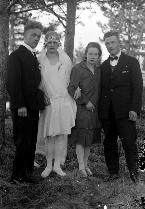 Lauri ja Hilda Virtanen os. Isomäki ja Reino Salmenaho. Vihitty 17.5.1929. Valokuvaaja Heikki Heikkola Kuvakoko 90x120