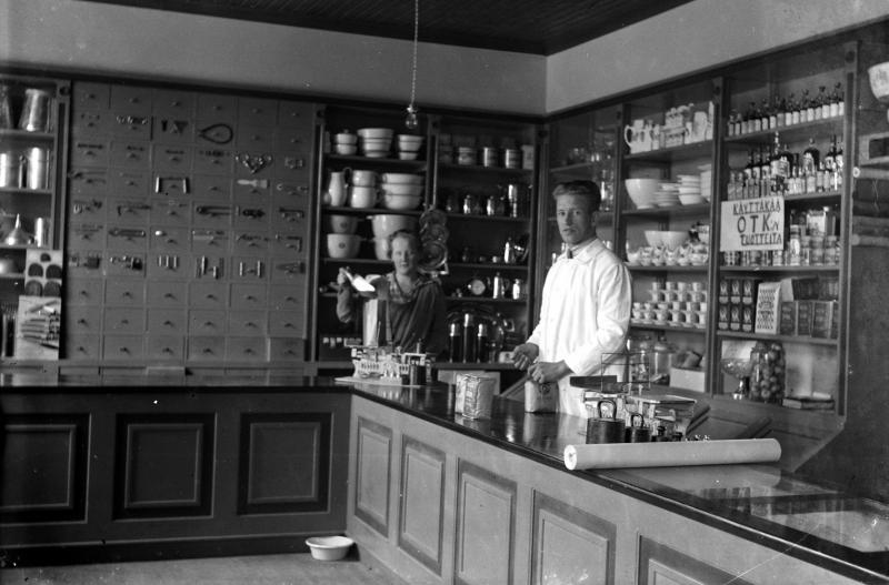 Alavudenseudun Osuusliikkeen sivumyymälän kauppiaspari Töysän kirkolla