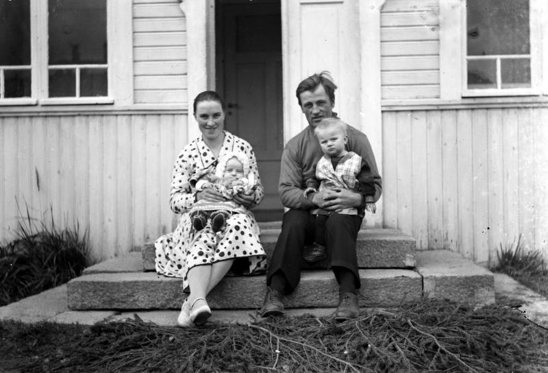 Aino (os. Juppo) ja Heikki Veikkola, lapset Terttu ja Olavi äidin sylissä Valokuvaaja Heikki Heikkola