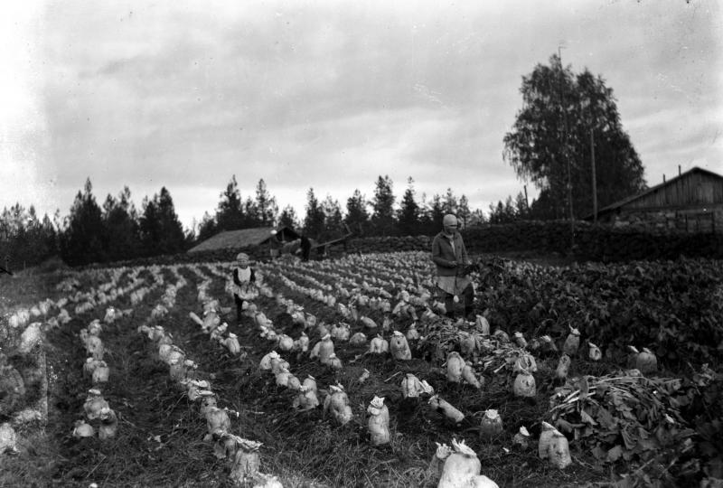 Ylimäen turnipsipellolla, oikealla vanha kivinavetta, Hakojärvellä