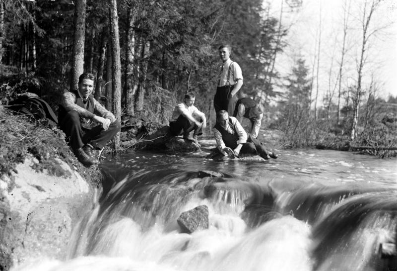 Vas. Verner Vanhamäki, miehet Jouttilammen myllypadolla