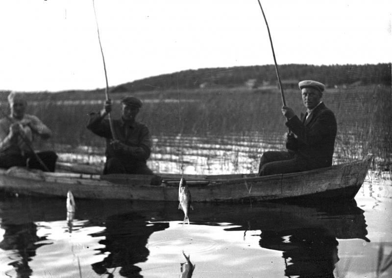 Miehet kalassa veneellä