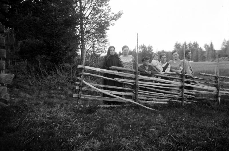 Vasemmalta Marja,Helka,Veikko,Annikki,Johanna,Anna ja Uuno Haapa-aho.
