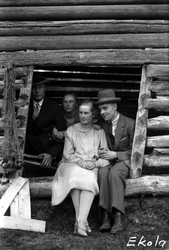 Edessä Anna (os. Ekola) ja Koivu takana Rauha (os. Ekola) ja Samuli Marjamaa. Valokuvaaja Heikki Heikkola