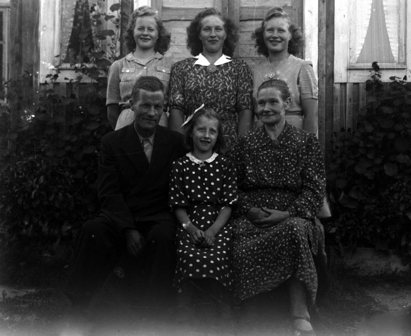 Lauri ja Hilma Ruuhelan perhe, vas. Rauni, Kerttu ja Rauha, edessä Raili Valokuvaaja Verner Vanhamäki