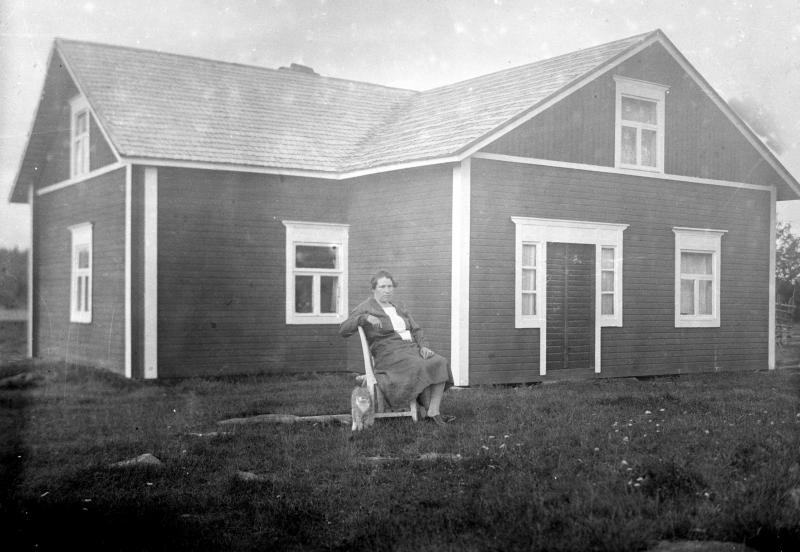 Lyydia Vanhamäki kotinsa Vanhamäen pihalla, Hakojärvi