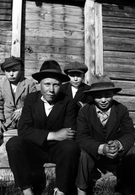 Takana vas. Toivo Lamminaho, Usko Mäkiranta, edessä vas. Onni Mäkiranta, Toivo Lähteenmaa Valokuvaaja Verner Vanhamäki