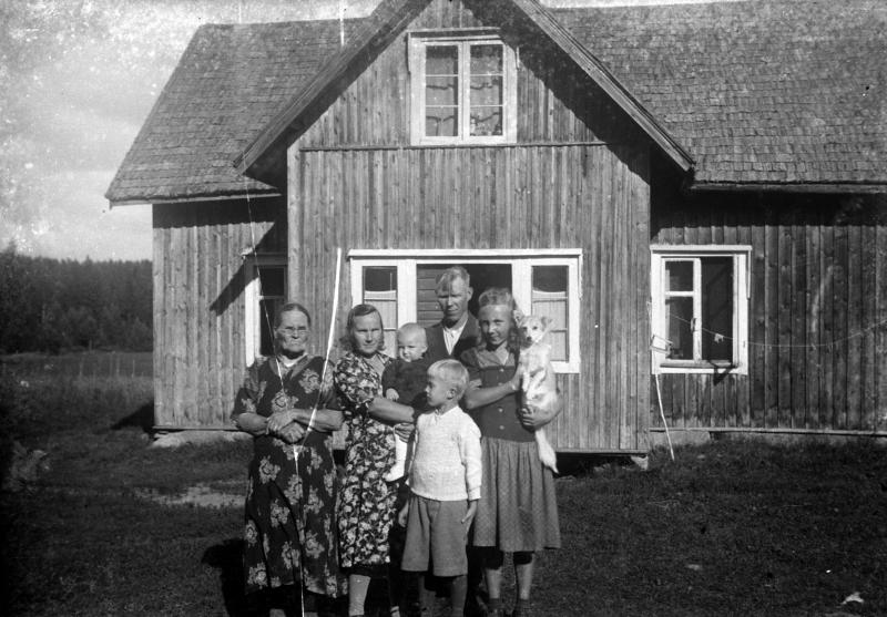 Väinö ja Aino Saarimäki, Vanha-Em Iida, Oik. tytär Anna-Liisa, Väinö, sylissä Risto Valokuvaaja Verner Vanhamäki