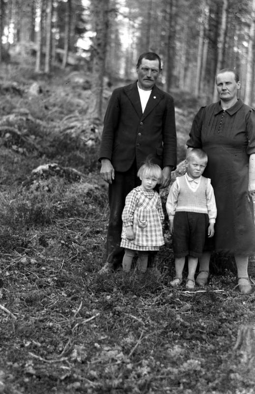 Väinö ja Lempi Mähönen, edessä Raija-Maija Vilppula ja nuorempi Väinö Mähönen Valokuvaaja Heikki Heikkola