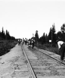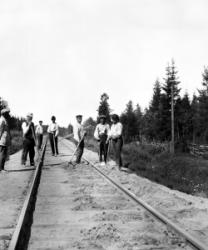 Ratatyömiehiä Lampilan-Katajamäen metsän paikkeilla. Valokuvaajana Verner Vanhamäki