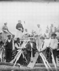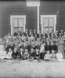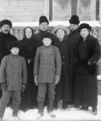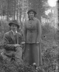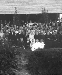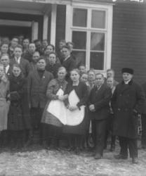 Lyyti Niemistön ja Matti Pennalan häät 21.8.1926. Morsiamesta toinen oik. Juho ja Sanna Takala. Takaloiden takana Aleksanteri ja Hilma Pennala.