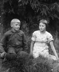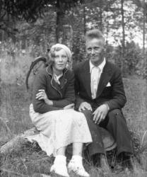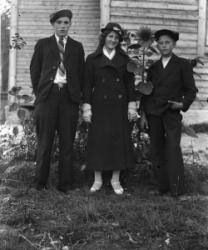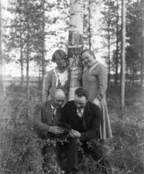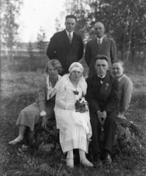 Hääpari Sanna Kaunisto ja Väinö Peltoniemi, häät 30.5.1931. Takana vas. Eino Autio, Konsta Tyrni. Oik. Impi Autio - Laurila.