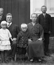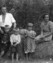 Peltola Julius ja Lempi os. Takamäki. Takana pojat vas. Into ja Toivo. Edessä vas. Eeva ja Terho.
