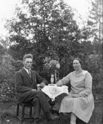 Oik. Hilda Kaunisto os. Koskela ja Matti Kaunisto (takana). Kalle Viitala