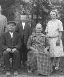 Hakalan perhe. Alarivi vas. Matti Hakala, Hilda Hakala (myöh. Rasi), ylärivi vas. Lempi Hakala myöh. Mäyrälä, Tauno Hakala, Elli Hakala myöh. Hämäläinen