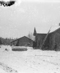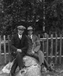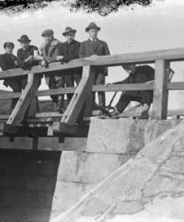 Heinosen nahkatehtaan kodalla, Pennalan joen sillalla. Toinen vas. Artturi Jokela