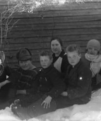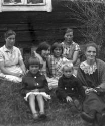 Takana vas. Hilda Mäkiranta, Laina Mäkiranta, oik. Lyyli Mäkiranta. Edessä oik. Serafia Salmi, o.s. Katajamäki.