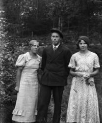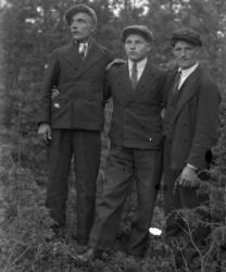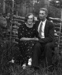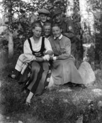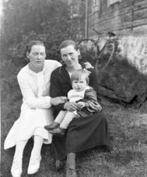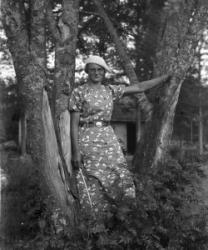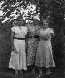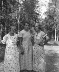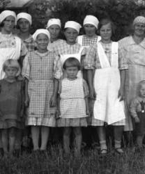 Tak. vas. Aino Mäkelä. Saima Einola, Mirjami Lamminaho, Kyllikki Mähönen, Hilda Mantere, kerhoneuvoja. Edessä vas Eeva Mähönen, Viola Puska, Liisa Mähönen, Inkeri, Lempi ja Väinö Mähönen. Maatalouskerhon karjanhoitokurssi Väinö ja Lempi Mähösen talossa.